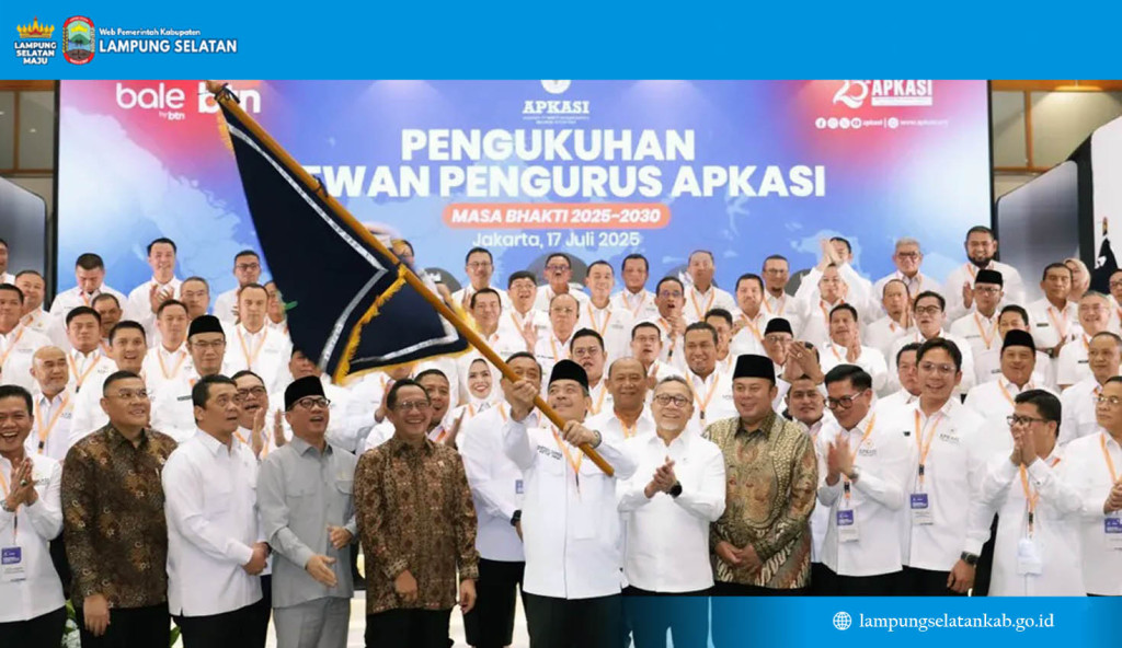 Jakarta – Bupati Lampung Selatan, Radityo Egi Pratama, resmi dikukuhkan sebagai Bendahara Umum Asosiasi Pemerintah Kabupaten Seluruh Indonesia (Apkasi) masa bakti 2025-2030.