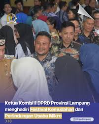 Ketua Komisi II DPRD Provinsi Lampung, H. Ahmad Basuki, menghadiri Festival Kemudahan dan Perlindungan Usaha Mikro yang digelar di Gedung Mall Pelayanan Publik (MPP) Kota Metro, Lampung. Acara ini mengusung tema “Lampung Mempesona: Ekowisata Berbudaya, UMKM Legal, Terlindungi dan Berdaya.”