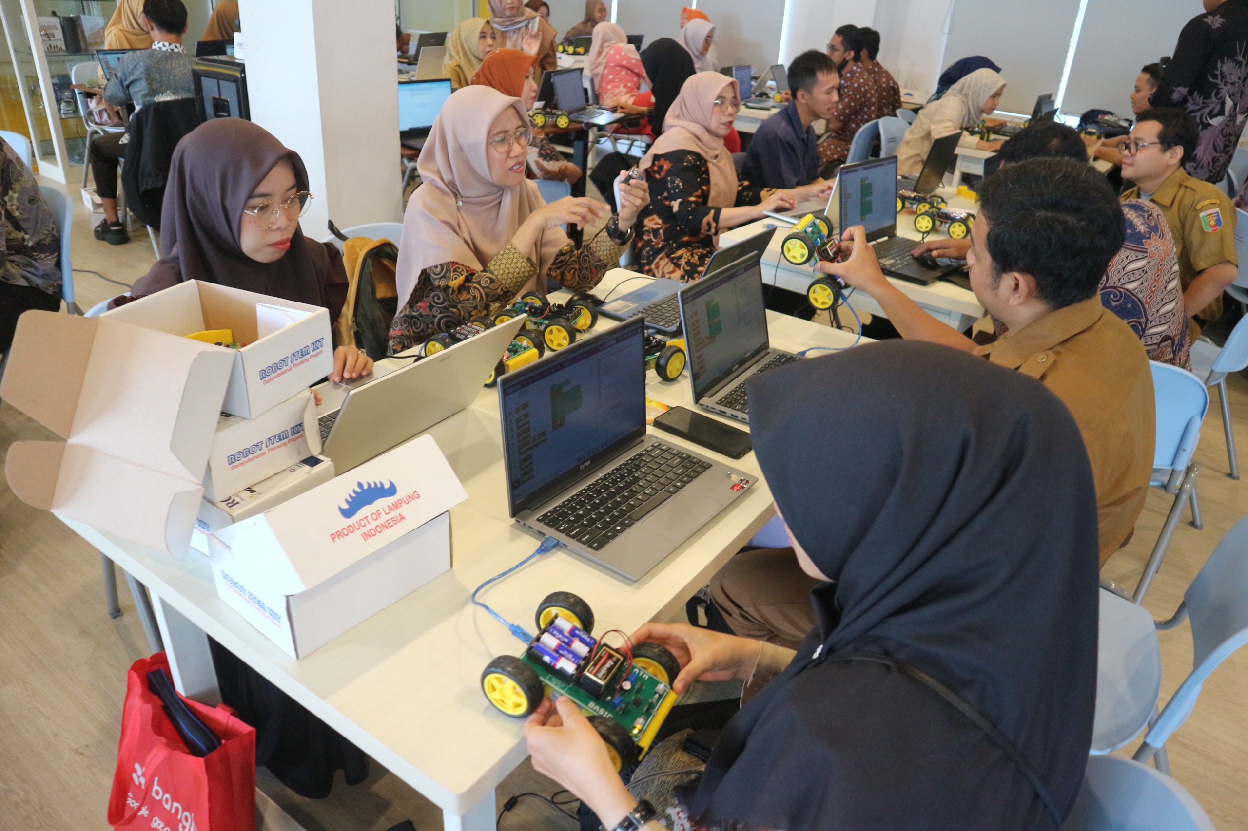 Selama pelatihan, peserta mendapatkan berbagai materi mulai dari dasar hingga lanjutan, seperti computational thinking, pemrograman robot, hingga pemanfaatan teknologi AI dalam pembelajaran. Materi yang diberikan juga mencakup pendidikan DIY (Do It Yourself), pembuatan coding untuk robot, pemrograman videotron, pengenalan sensor dan aktuator, hingga praktik pembuatan berbagai jenis robot seperti robot explorer, robot soccer, robot obstacle, dan robot kreatif.