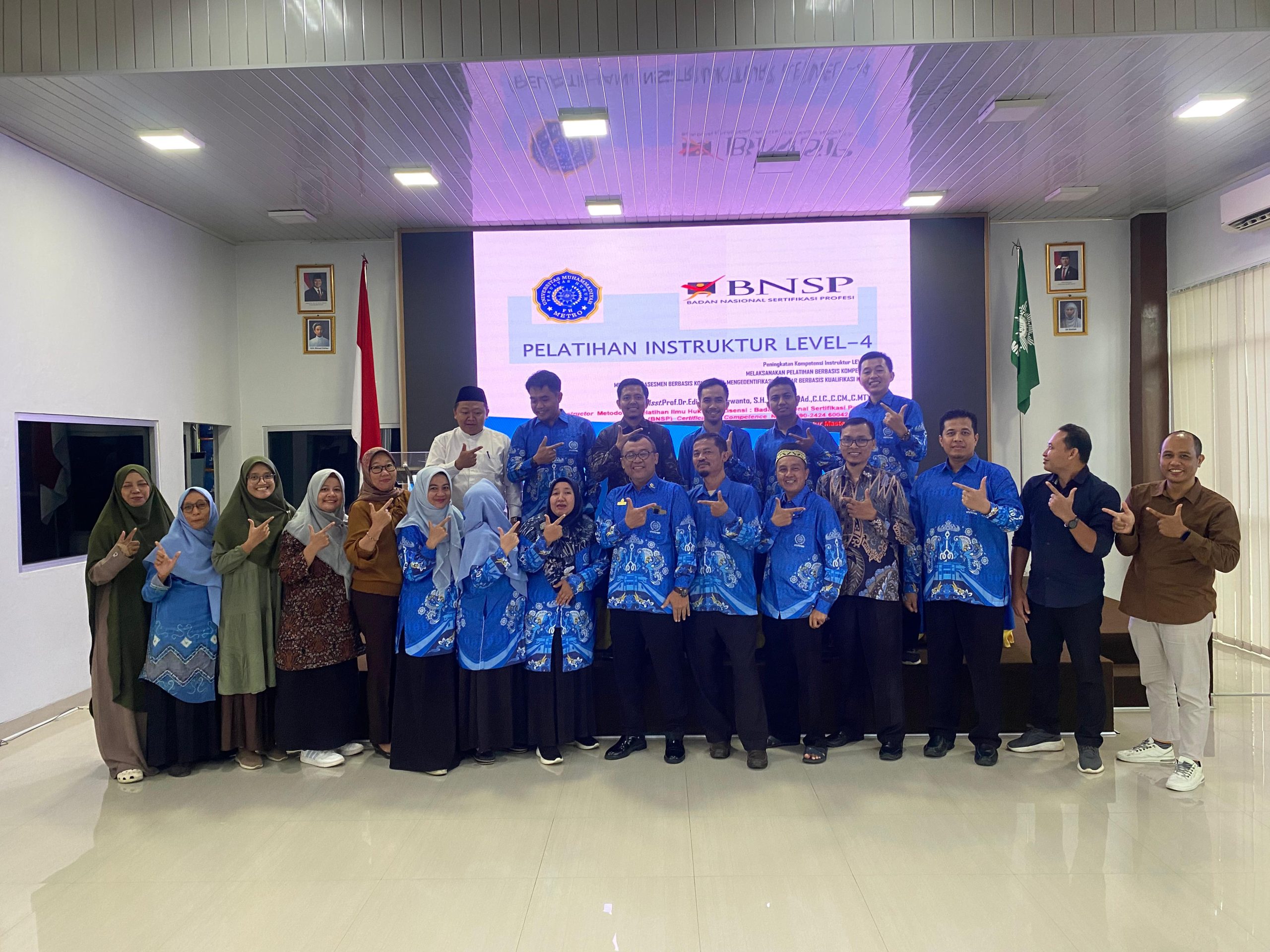 Kota Metro – Instruktur Level-IV memeliki peran strategis sebagai fasilitator pembelajaran, motifator peserta, pengendali mutu pelatihan dan pendukung kesiapan asesmen. Sehingga tujuan pelatihan instruktur Level-IV untuk memehami peran instruktur menguasai pelatihan berbasis kompetensi, menyusun rencana pelaksanaan pembelajaran berbasis standar kompetensi kerja nasional Indonesia dan meningkatkan mutu pembelajaran dan asesmen. Hal itu di katakan Asst. Prof. Dr. Edi Ribut Harwanto, S. H., M.H.,C. LAd., C.LC., C.CM., C.MT Master Trainer BNSP bidang pelatihan metodologi pelatihan ilmu hukum di depan para peserta pelatihan asesi yang diselengarakan oleh LSP UM Metro di aula AR Fahrudin Kampus Universitas Muhammadiyah Metro hari ini (15/4/2026) pagi.