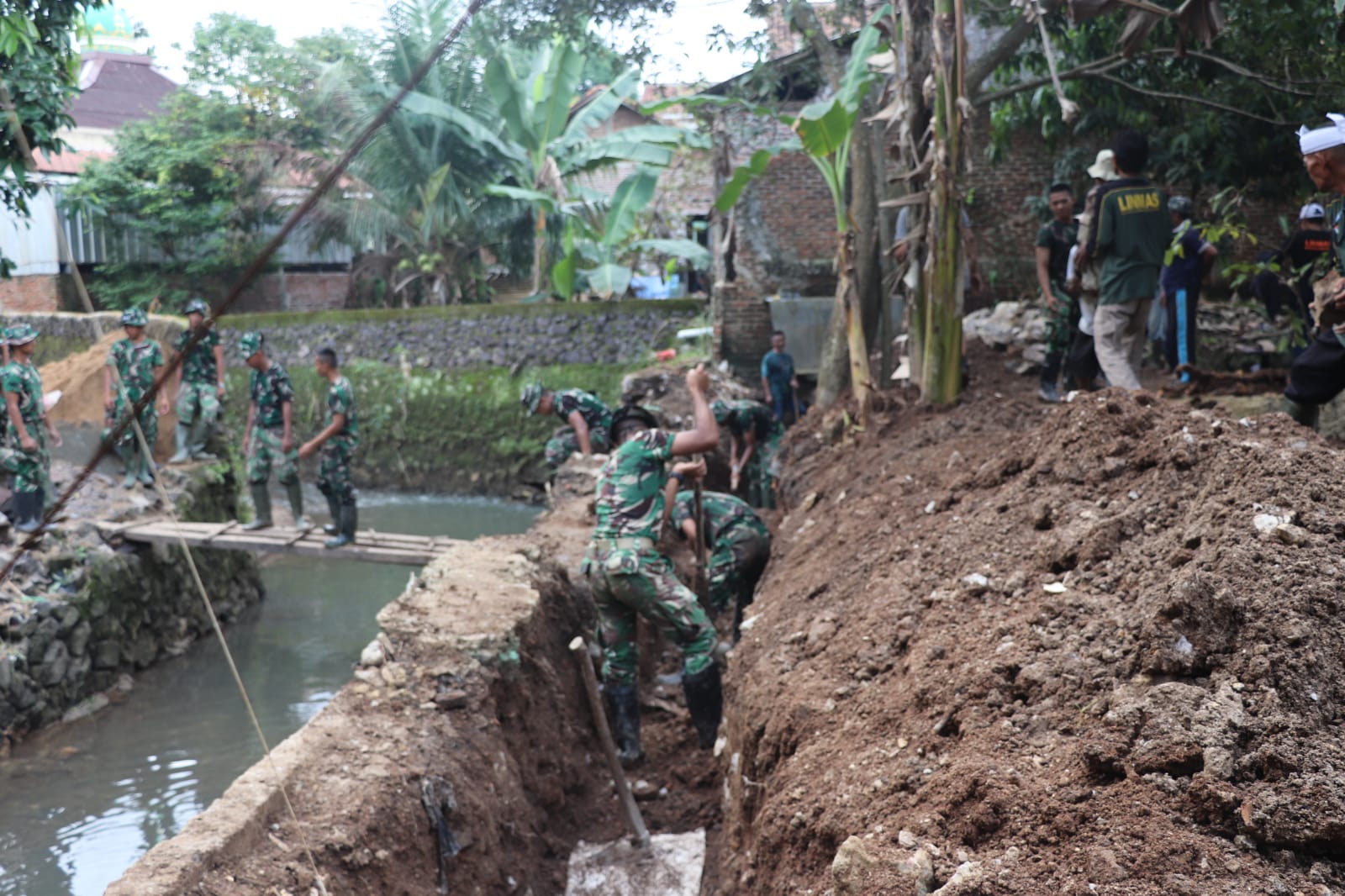 Kegiatan yang dimulai sejak pukul 07.00 WIB hingga selesai ini merupakan wujud nyata kepedulian TNI AD, khususnya para Babinsa, dalam membantu masyarakat yang tengah menghadapi dampak bencana hidrometeorologi. Kehadiran mereka tidak hanya sebagai pengawas, tetapi juga turut bahu-membahu memindahkan material, menggali pondasi, serta membersihkan puing-puing bangunan dan sampah yang menyumbat aliran sungai.