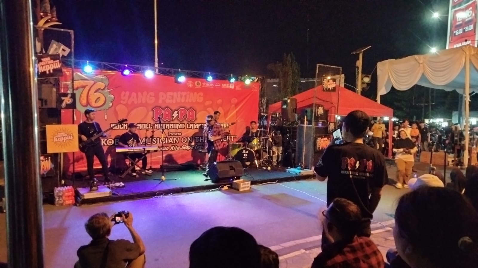 Live musik bertajuk “Kobum Musician On The Streat” berhasil menyedot perhatian ratusan masyarakat Kotabumi yang turut menyaksikan secara langsung di lokasi kegiatan.