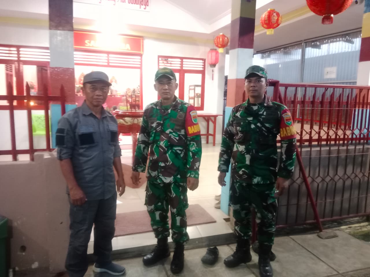 Tak hanya melakukan pengamanan statis, personel gabungan juga terlihat aktif berkomunikasi dengan pengurus vihara dan jamaat untuk memastikan situasi tetap kondusif. Kehadiran Lurah Gedong Air, Fajar Muntoni, S.T. turut memperkuat sinergi antara TNI dan pemerintah daerah dalam menjaga kerukunan umat beragama.
