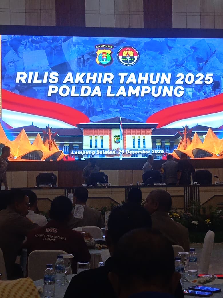 LAMPUNG SELATAN – Kepolisian Daerah (Polda) Lampung gelar Rilis Akhir Tahun 2025 di Gedung Serba Guna (GSG) Presisi Polda Lampung, Senin (29/12/2025).