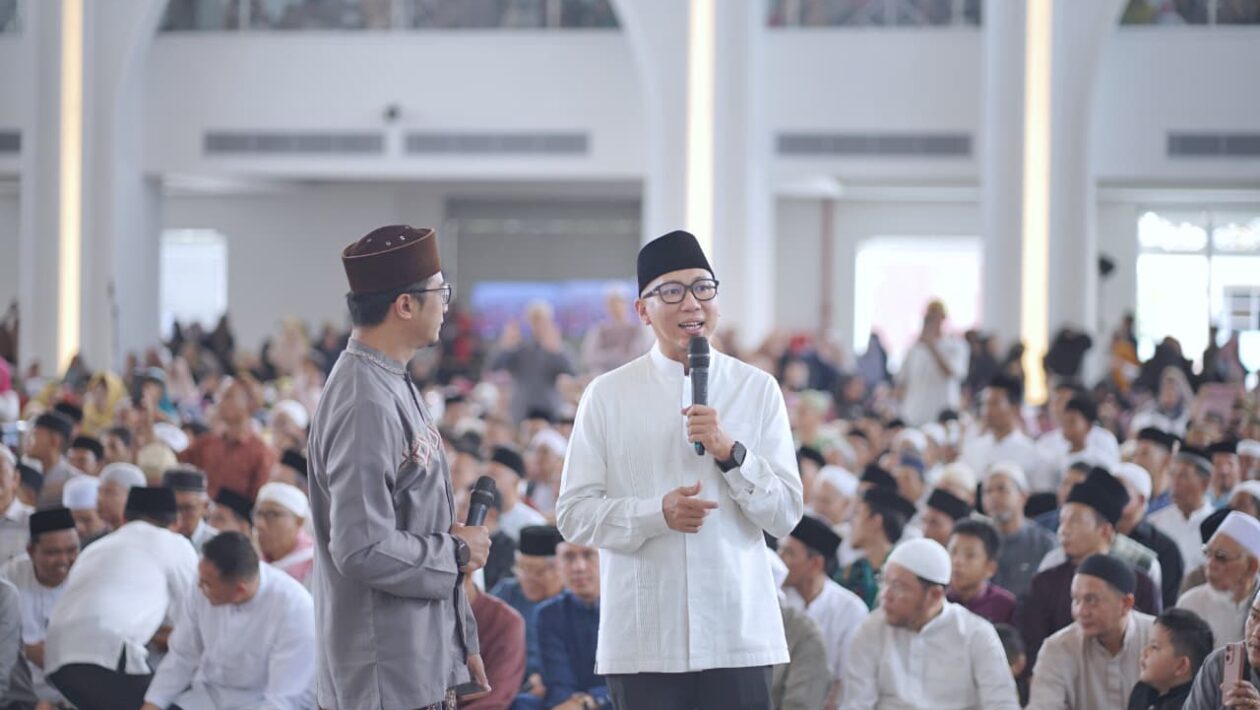 BANDAR LAMPUNG- Gubernur Lampung, Rahmat Mirzani Djausal, menghadiri acara Damai Indonesiaku yang bertema “Hidup Plong, Tanpa Sifat Sombong” di Masjid Raya Al-Bakrie, Minggu (14/09/2025). Acara ini diselenggarakan sebagai bagian dari rangkaian peresmian masjid yang baru saja diresmikan pada Jumat, 12 September 2025.